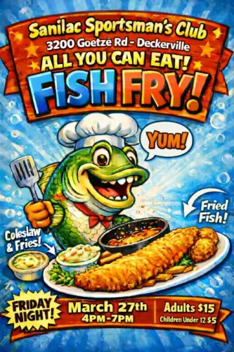 The Sanilac Sportsman’s Club will be holding a All You Can Eat Fish Fry