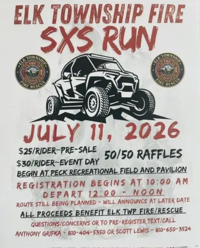 Elk Twp. Fire Rescue in Peck. We are having a side by side ride fundraiser and also a BBQ