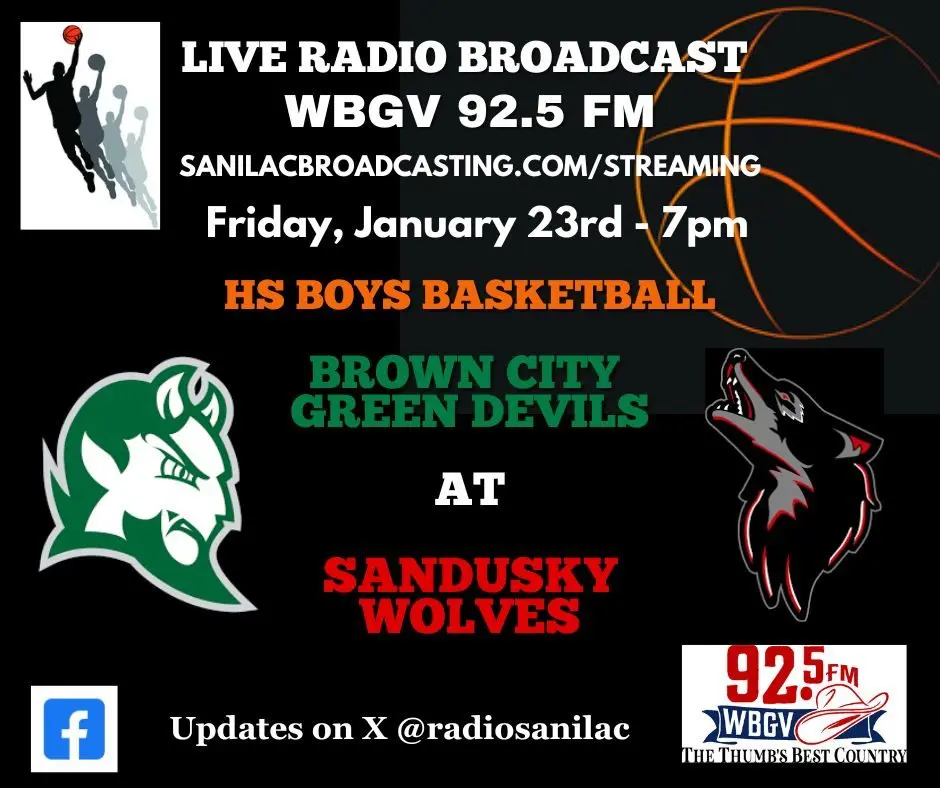 WBGV 92.5 FM Podcast Game Replay of HS Boys Basketball with Brown City at Sandusky, 1-23-2026. Sandusky got the…